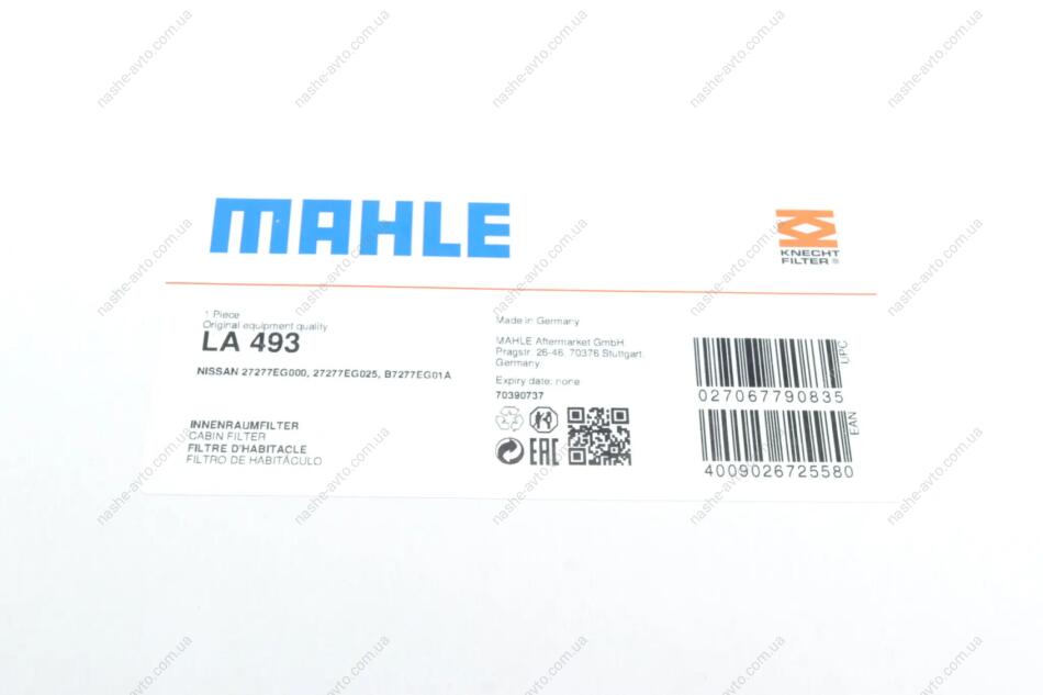 Фільтр салону MAHLE / KNECHT LA 493