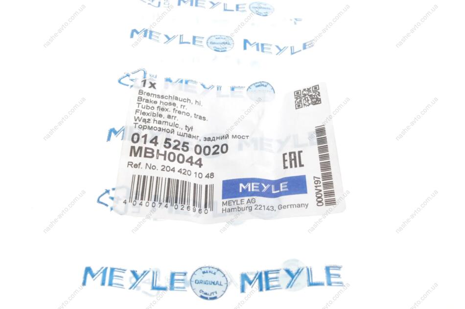 Шланг гальмівний MEYLE 014 525 0020
