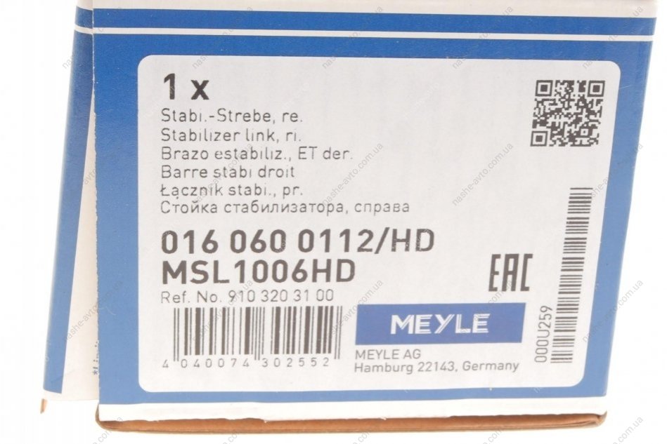 Стійка стабілізатора MEYLE 016 060 0112/HD