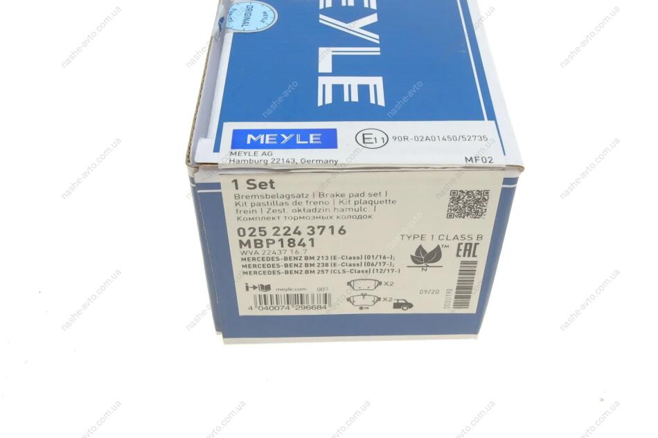Комплект гальмівних колодок MEYLE 025 224 3716