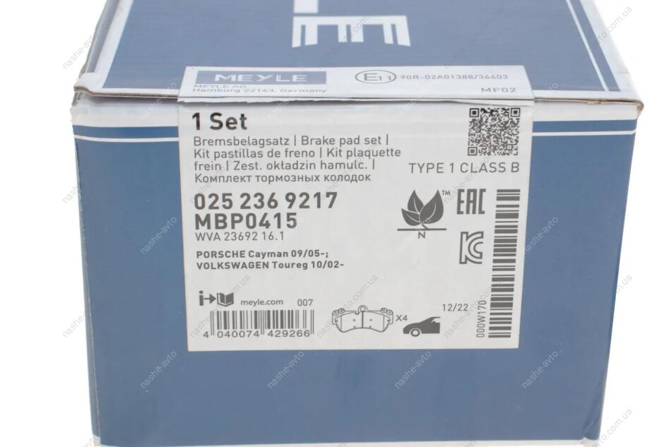 Комплект гальмівних колодок MEYLE 025 236 9217