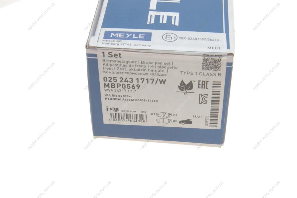 Комплект гальмівних колодок MEYLE 025 243 1717/W