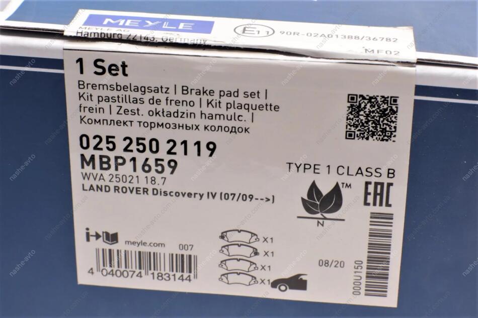 Комплект гальмівних колодок MEYLE 025 250 2119