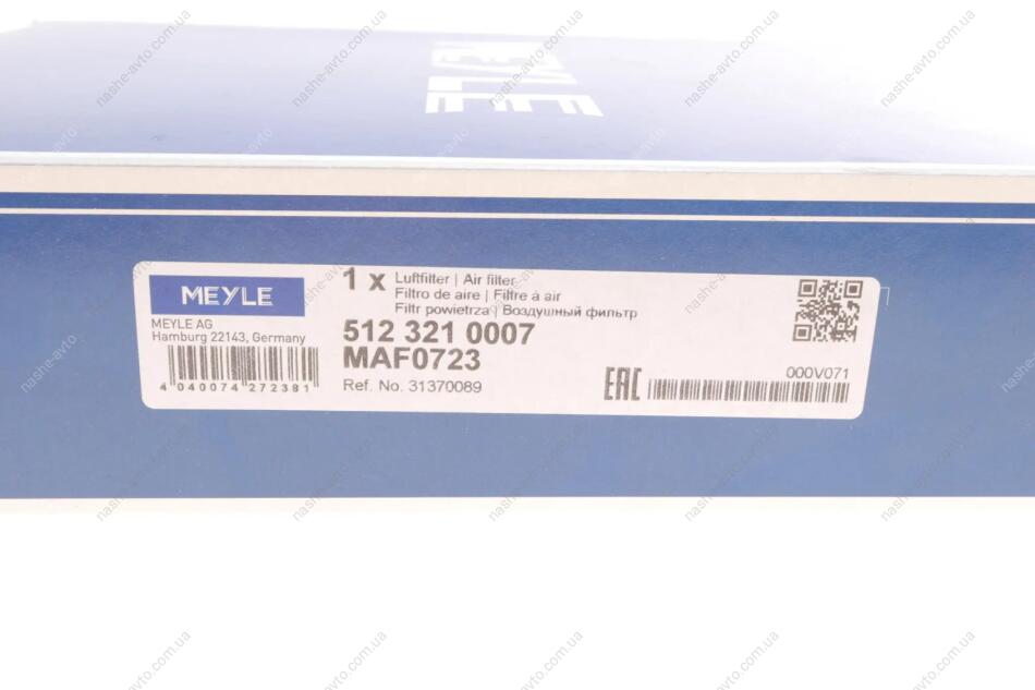 Фільтр повітряний MEYLE 512 321 0007