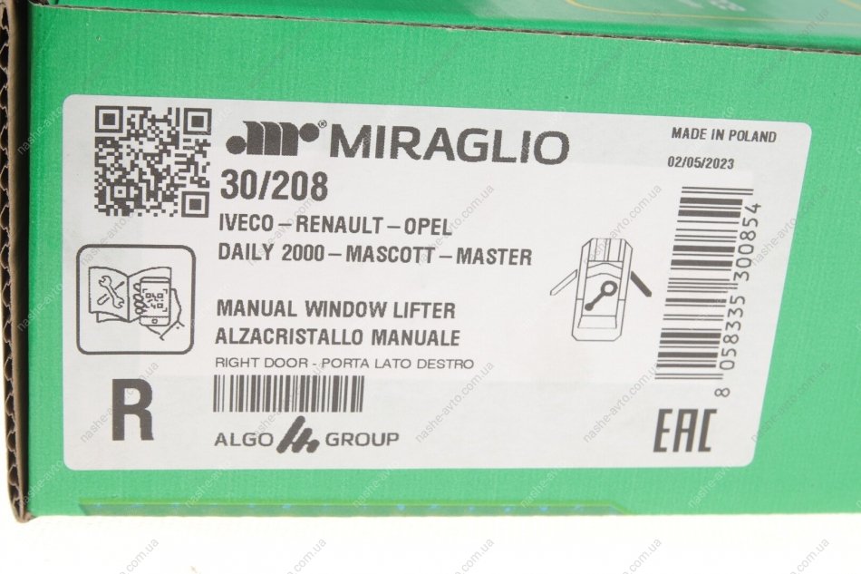 MIRAGLIO — це відомий італійський бренд, який спеціалізується на виробництві деталей для дверей, вікон і багажників автомобілів. У каталозі — склопідйомники, ручки дверей, замки, петлі та інші елементи кузовної фурнітури. Продукція MIRAGLIO відзначається якісними матеріалами, точною відповідністю та надійністю в експлуатації.