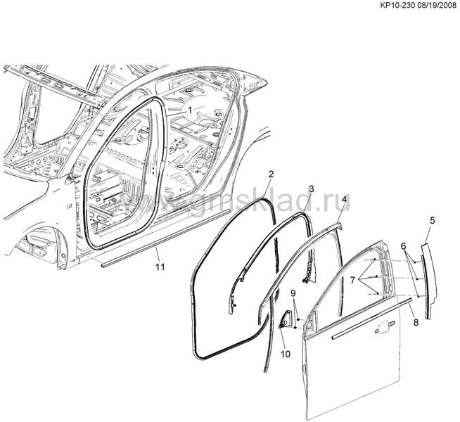 PP,PQ,PR69 НАЩІЛЬНІ РІЙКИ ПЕРЕДНІ ДВЕРІ KP10-230 |