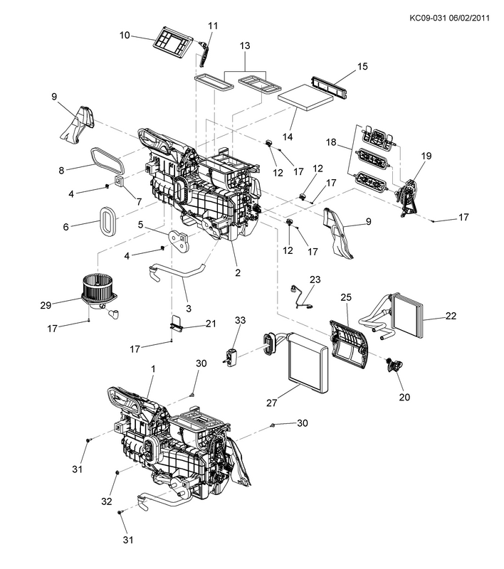 CP,CQ,CR48 БЛОК КОНДИЦІОНЕРА І ОБІГРІВАЧА У ЗБОРІ І МОНТАЖ(C60,LHD,C46) KC09-031 |