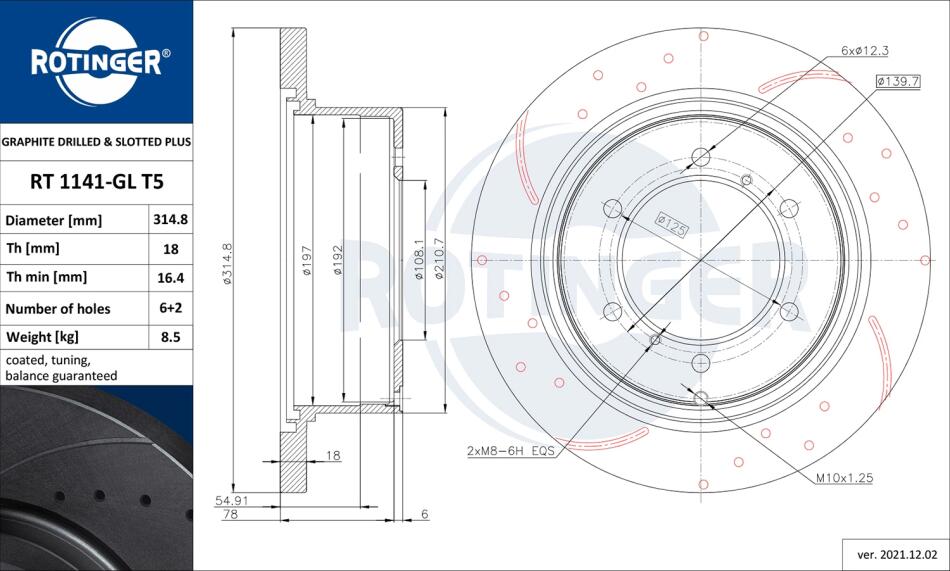Диск тормозной задний (кратно 2) MITSUBISHI PAJERO (II,III), PAJERO SPORT I [315 ROTINGER RT1141GLT5