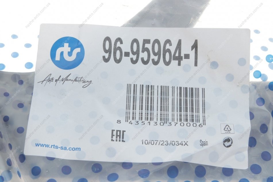 RTS — іспанський бренд з понад 35-річним досвідом, що спеціалізується на виготовленні компонентів рульового управління та підвіски для легкових і комерційних автомобілів. Продукція випускається на власних європейських заводах згідно зі стандартами OE‑класу, із застосуванням передових технологій і суворим контролем якості. Щороку компанія розробляє понад 500 нових артикулів, а обсяги виробництва перевищують 10 мільйонів деталей. RTS експортує товари в понад 75 країн, надаючи гарантію на продукт та відповідаючи сертифікації ISO 9001, ISO 14001 та EAC.