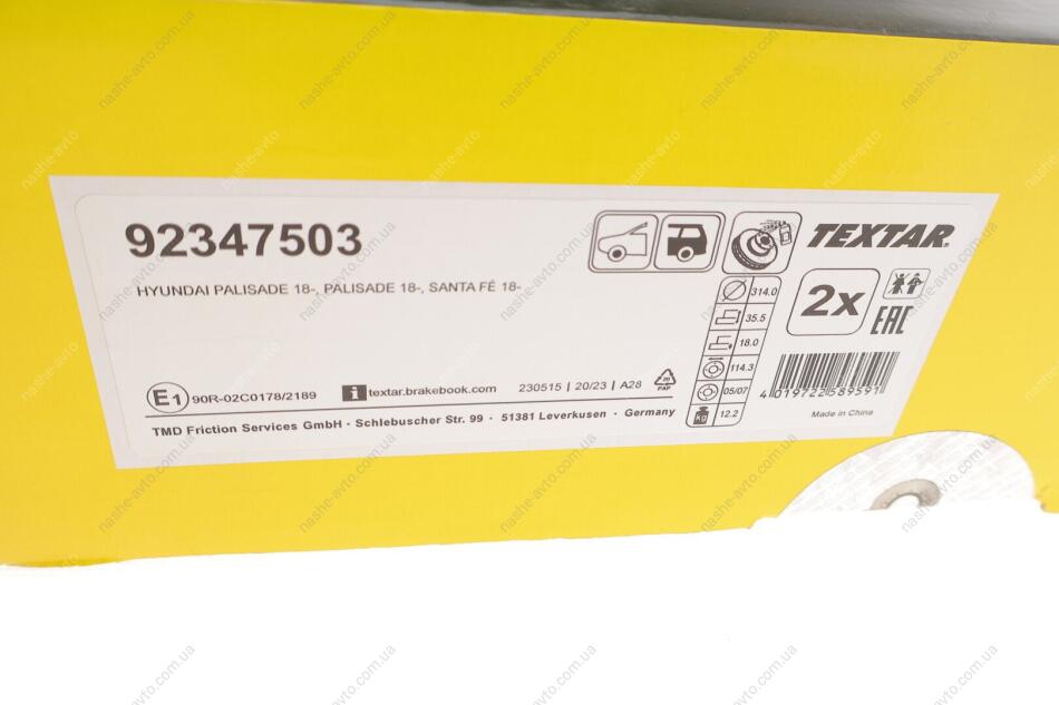 Диск гальмівний TEXTAR 92347503