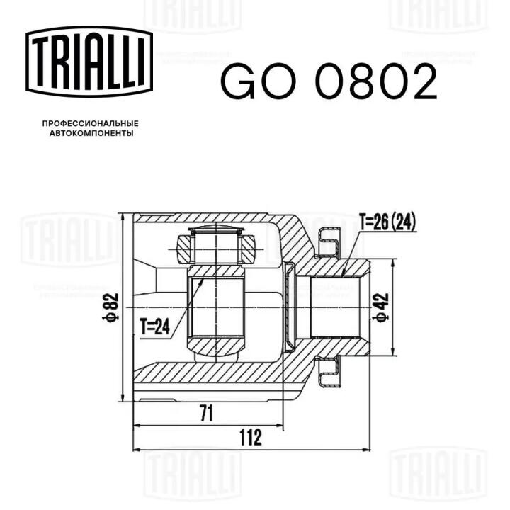 ШРУС внутренний правый Tucson 2.0/2.7 (04-) MT (нар:26(24)/вн:24) Trialli GO 0802