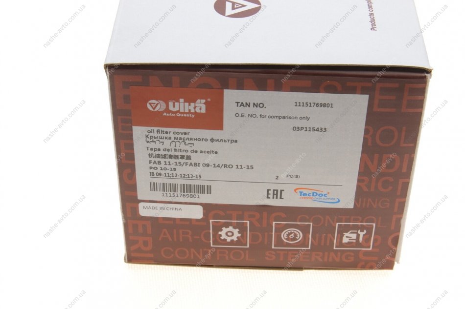 Кришка масляного фільтра Skoda Fabia (11-15), Fabia (09-14)/VW Polo (10-15)/Seat Ibiza (09-15) VIKA 11151769801